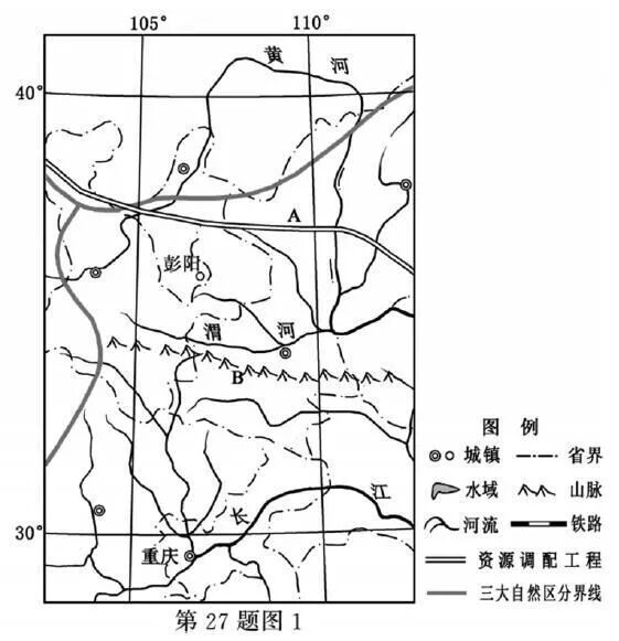 (3)图中B____(名称)山脉是我国重要的地理分界线。渭河谷地的地质构造属于______,冬季风力较弱时,加之居民_______(人类活动)排放的大气污染物增多,易发生雾霾天气。