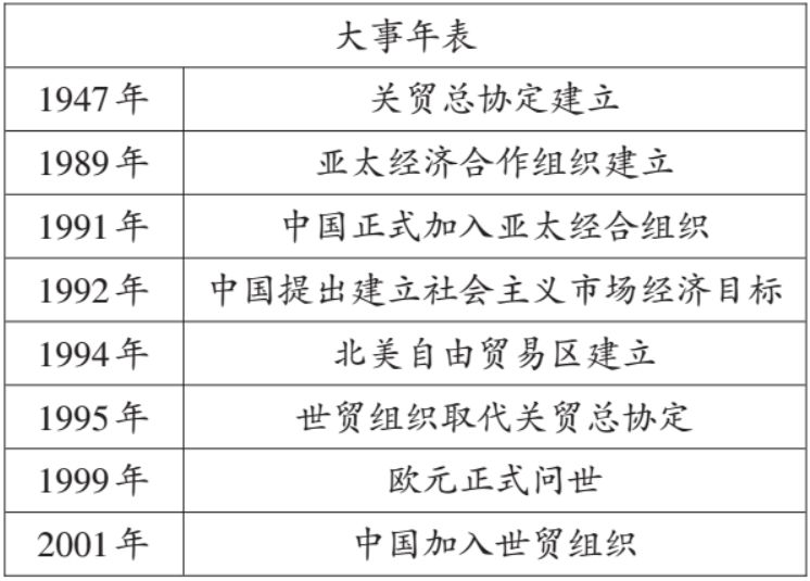 下表为《经济全球化大事年表(部分)》。下列项中,对该表信息解读不正确的是