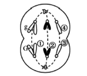 例3(2017年11月卷第22题)二倍体生物(2n=6)的某细胞处于细胞分裂某时期的示意图如下,其中①~④表示染色体。据图分析,错误的是
