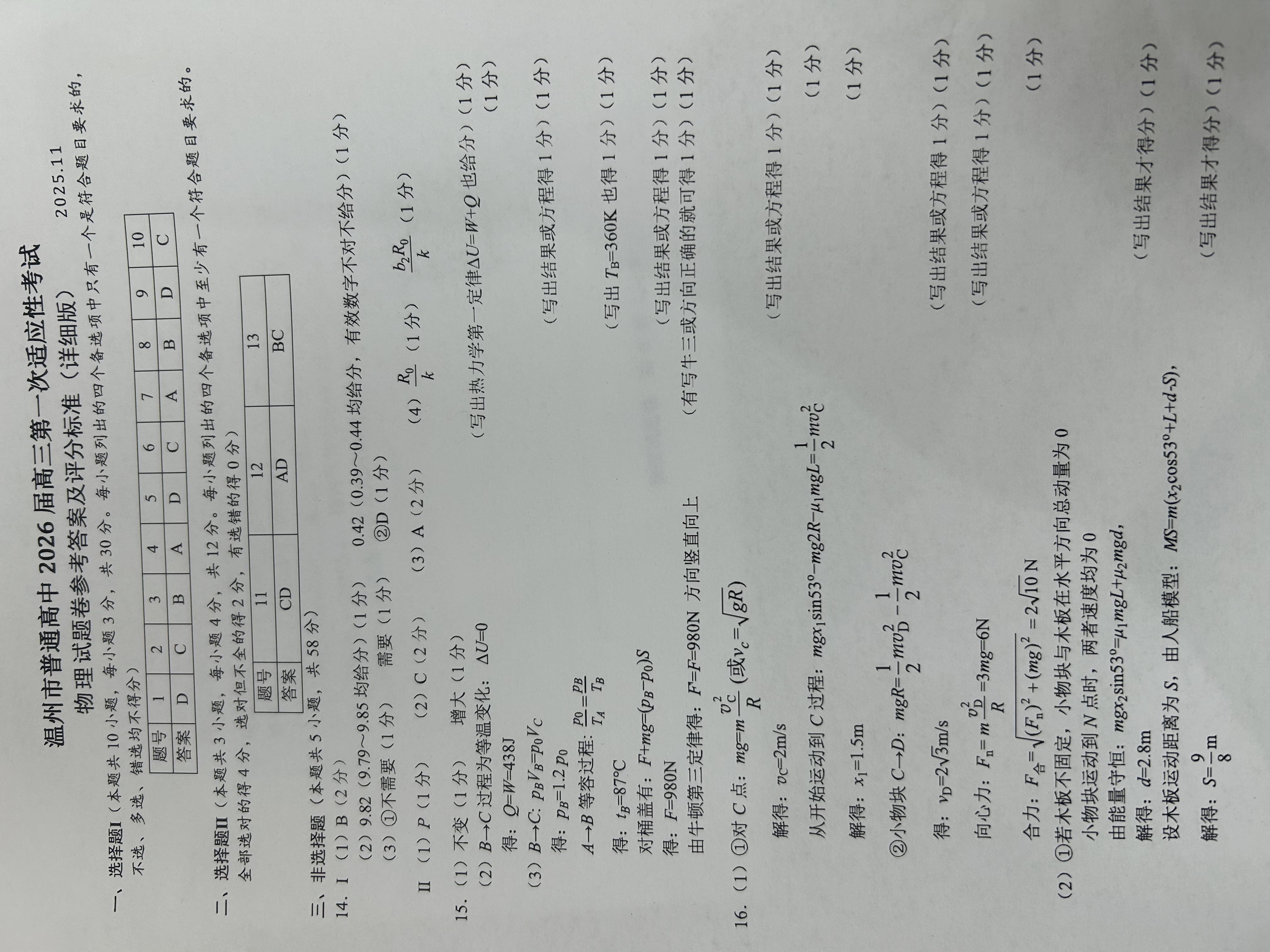 温州市 一模物理