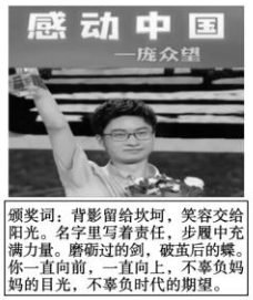15.感动中国人物庞众望,出身贫困家庭却始终自强不息,凭借刻苦努力考入清华大学并攻读博士学位。他科研报国,攻克光刻机相关技术,拒绝国外高薪;潜心钻研,以多项专利助力国产化;坚持8年还清家庭欠款,拒绝不当资助;照料患病父母,发起公益计划资助200余名学子,用青春力量传递正能量。