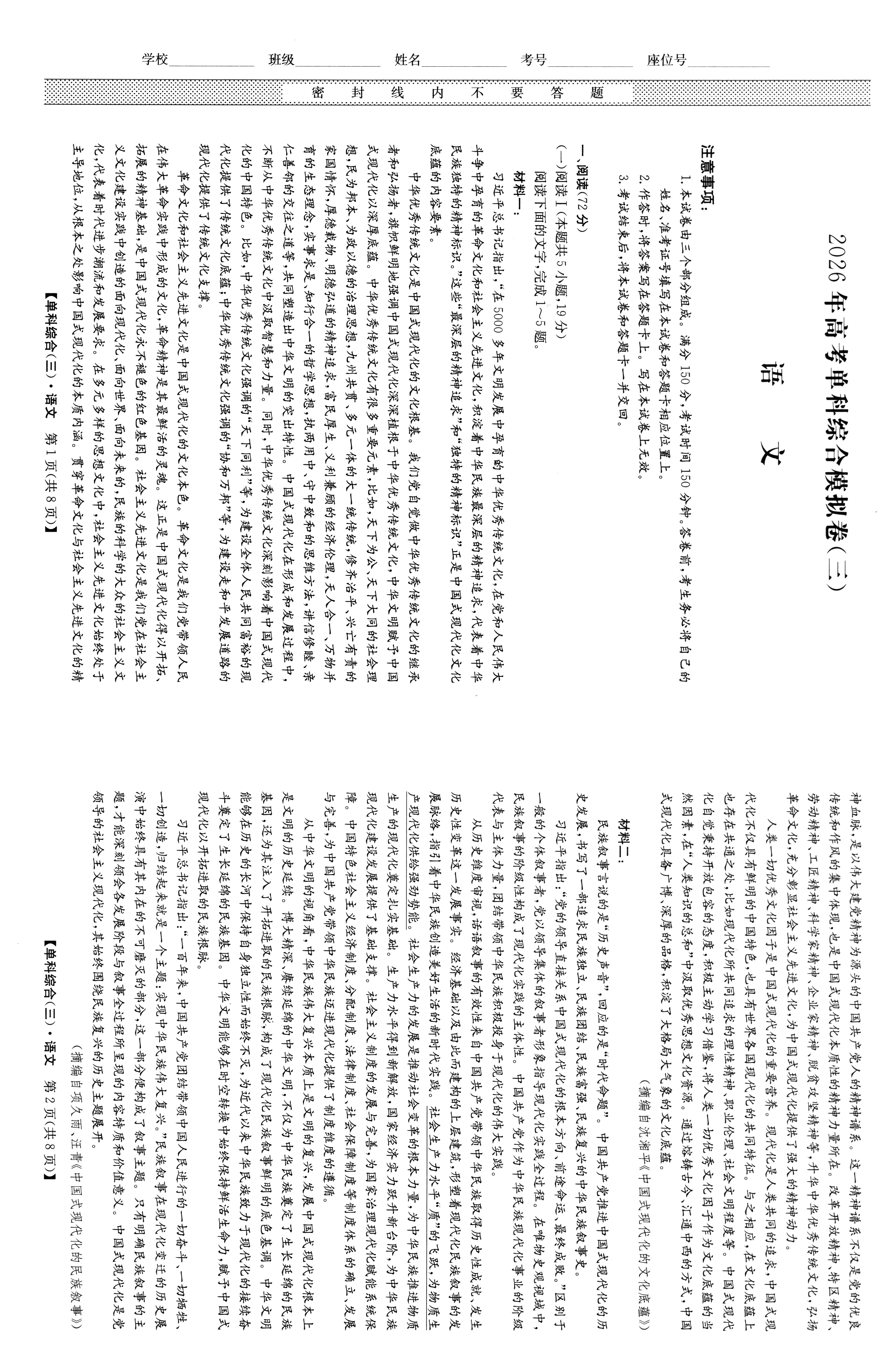 高考语文冲刺卷3