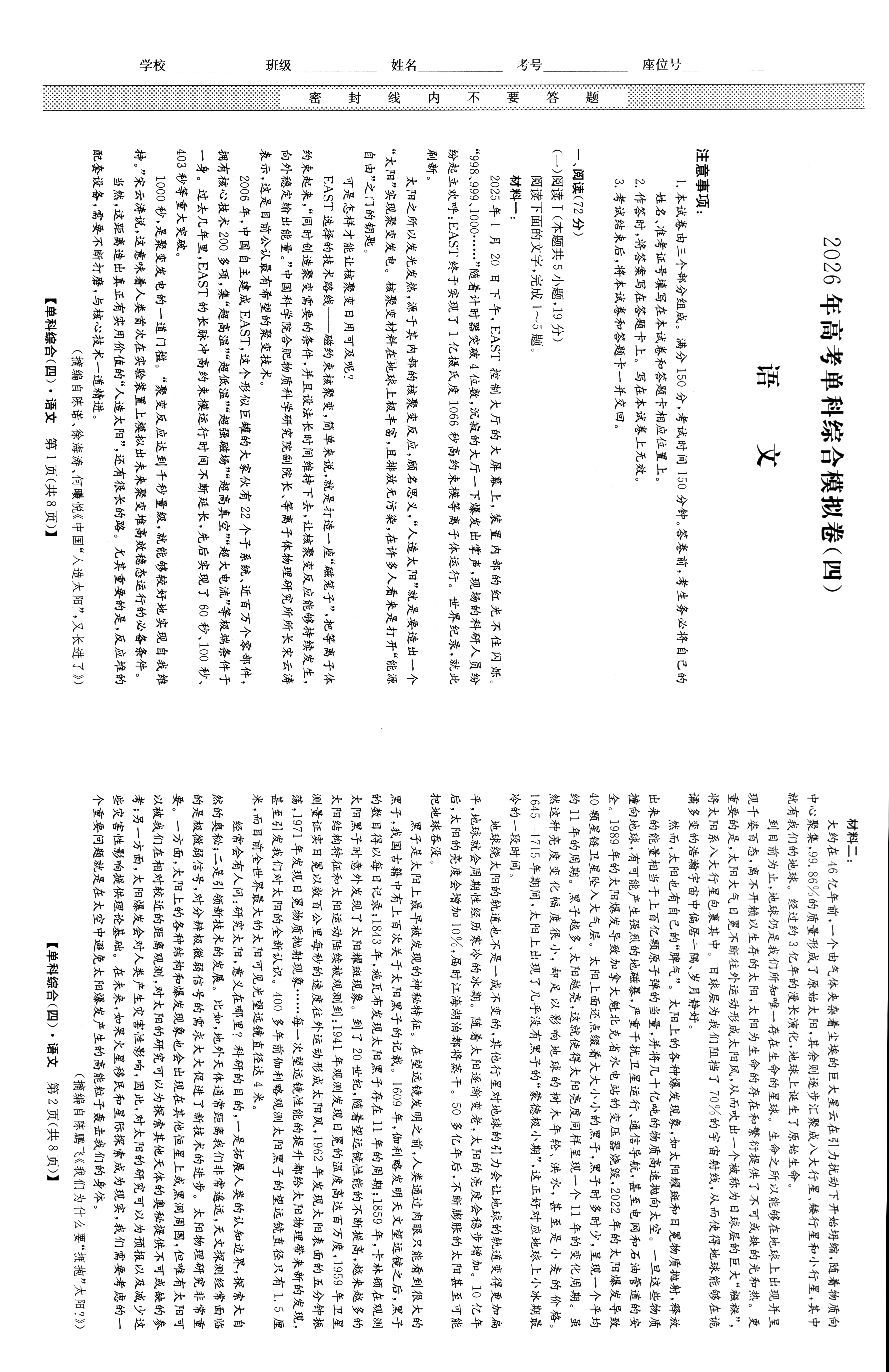 高考语文冲刺卷4