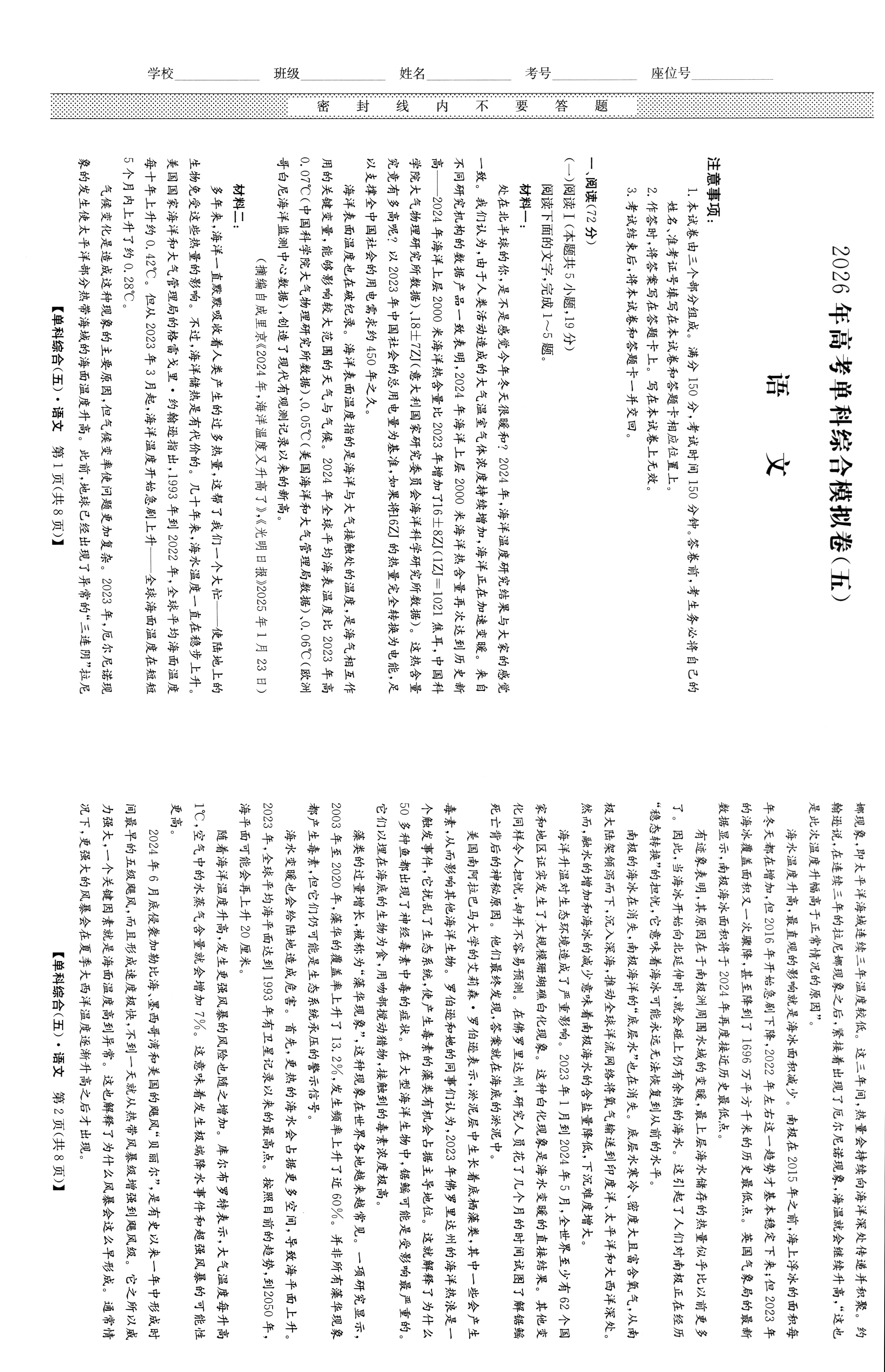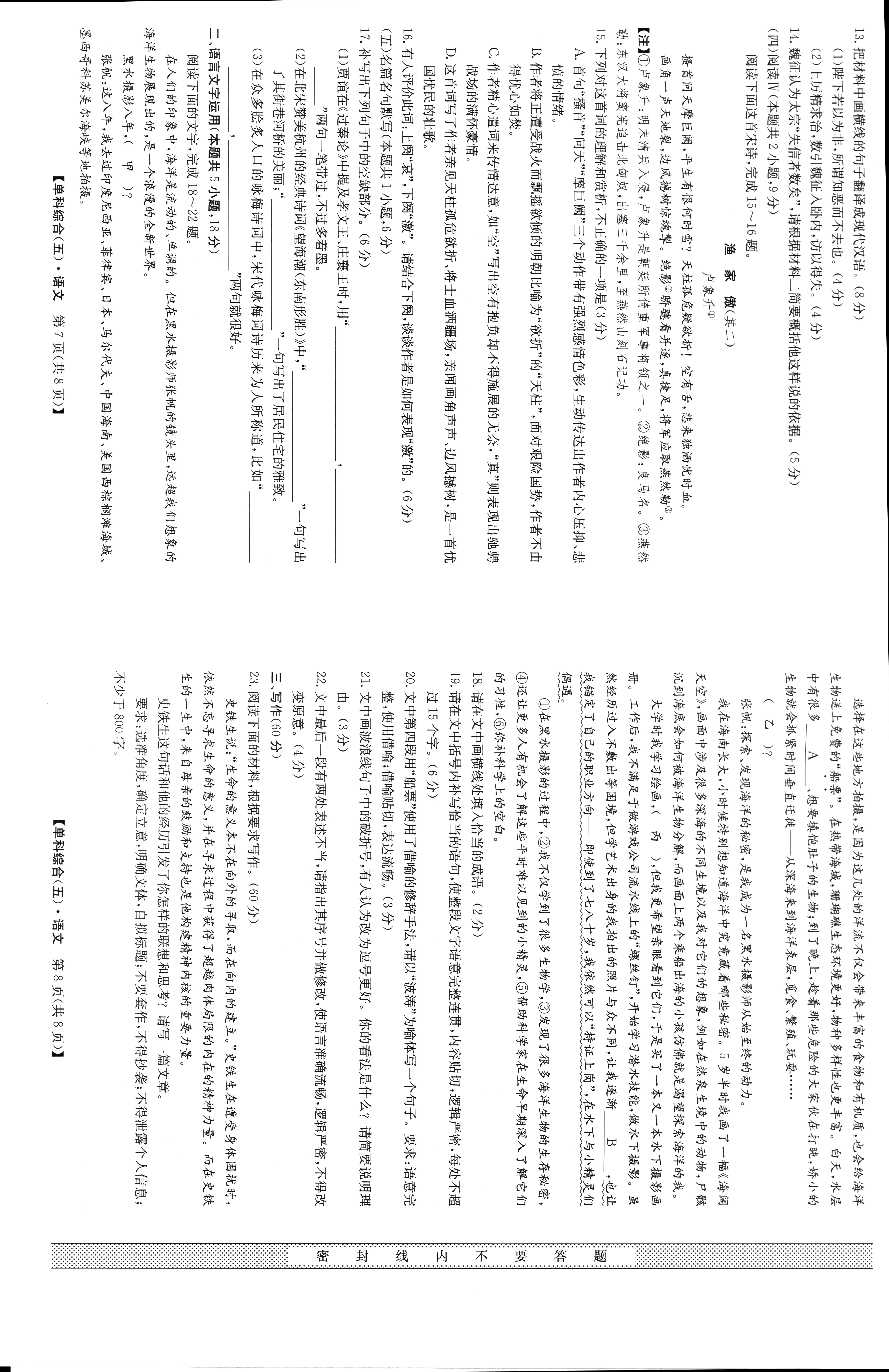 高考语文冲刺卷5