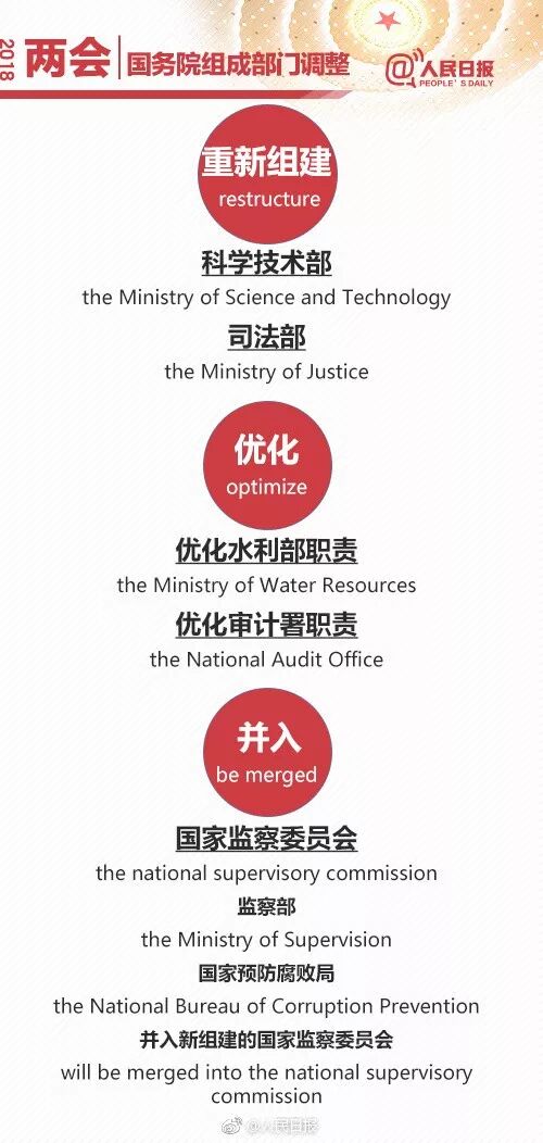 “自然资源部”“生态环境部”“文化和旅游部”…这些国务院新部门,你知道怎么用英语表达吗?“国家知识产权局”“国家医疗保障局”“国家广播电视总局”…国务院其他机构调整,什么才是地道翻译?学起来吧!(@人民日报)